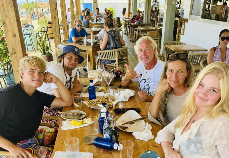 The photo: empty plates, crumpled napkins, sun in our faces.